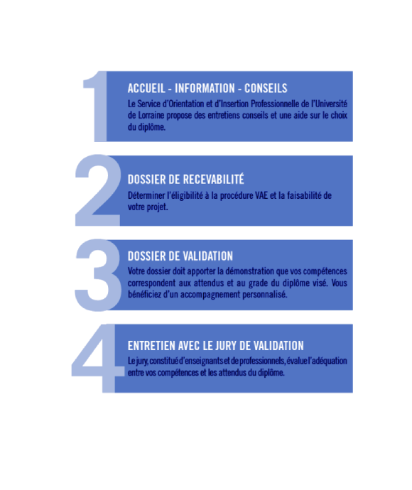 Ce dispositif permet l’obtention de tout ou partie d’une certification (diplôme, titre à finalité professionnelle ou certificat de qualification professionnelle) sur la base d’une expérience professionnelle salariée, non salariée (commerçant, collaborateur de commerçant, profession libérale, agriculteur ou artisan... ) et/ou bénévole (syndicale, associative) et/ou volontaire.